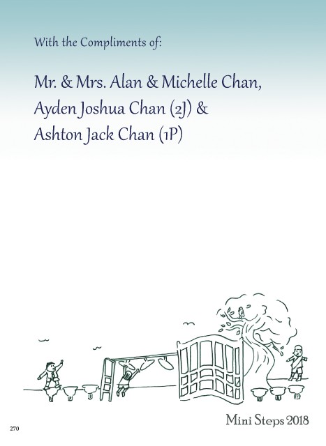 With the Compliments of: Mr. & Mrs. Alan & Michelle Chan, Ayden Joshua Chan (2J) & Ashton Jack Chan (1P) 270