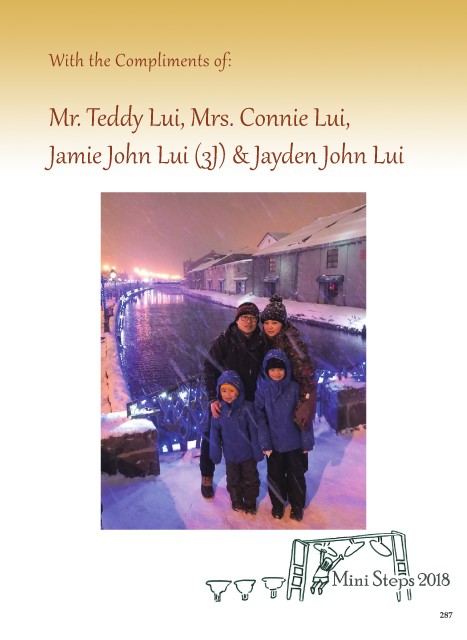 With the Compliments of: Mr. Teddy Lui, Mrs. Connie Lui, Jamie John Lui (3J) & Jayden John Lui 287