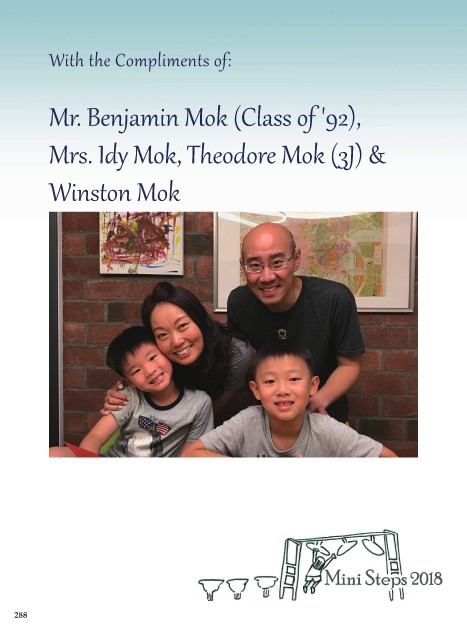 With the Compliments of: Mr. Benjamin Mok (Class of '92), Mrs. Idy Mok, Theodore Mok (3J) & Winston Mok 288