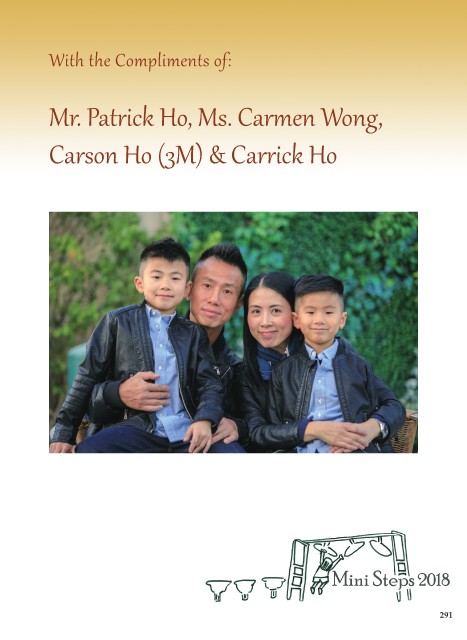 With the Compliments of: Mr. Patrick Ho, Ms. Carmen Wong, Carson Ho (3M) & Carrick Ho 291