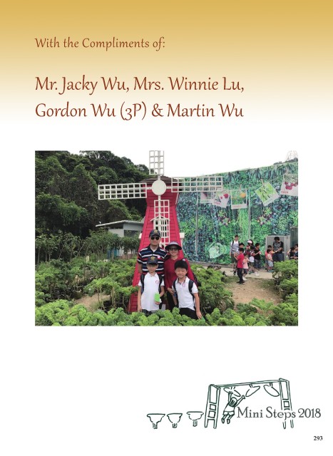 With the Compliments of: Mr. Jacky Wu, Mrs. Winnie Lu, Gordon Wu (3P) & Martin Wu 293