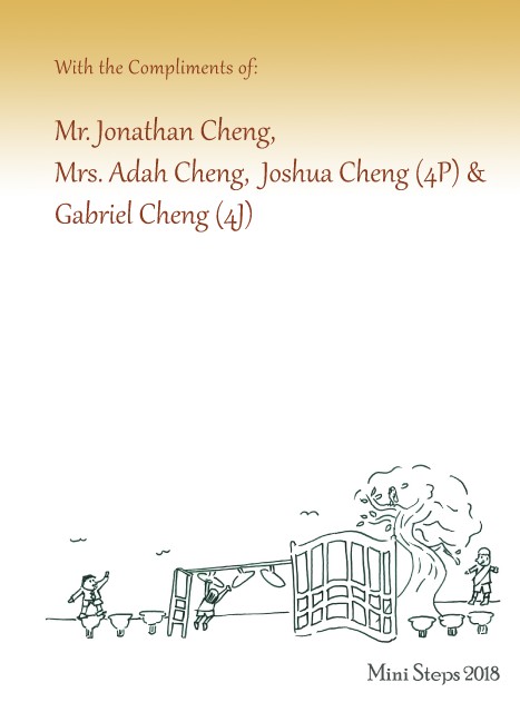 With the Compliments of: Mr. Jonathan Cheng, Mrs. Adah Cheng, Joshua Cheng (4P) & Gabriel Cheng (4J)
