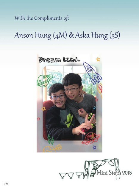 With the Compliments of: Anson Hung (4M) & Aska Hung (3S) 302