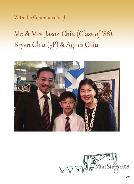 With the Compliments of: Mr. & Mrs. Jason Chiu (Class of '88), Bryan Chiu (5P) & Agnes Chiu 307