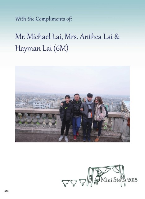 With the Compliments of: Mr. Michael Lai, Mrs. Anthea Lai & Hayman Lai (6M) 320