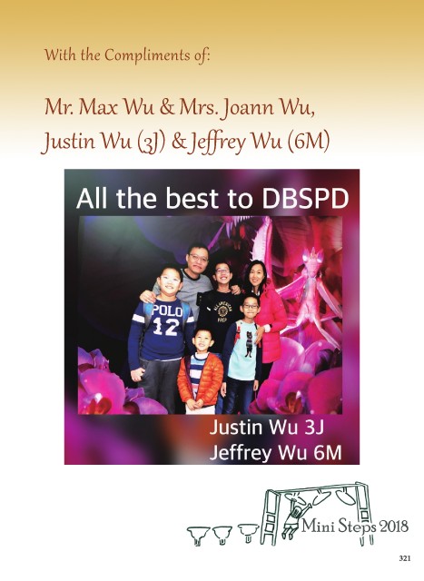 With the Compliments of: Mr. Max Wu & Mrs. Joann Wu, Justin Wu (3J) & Jeffrey Wu (6M) 321