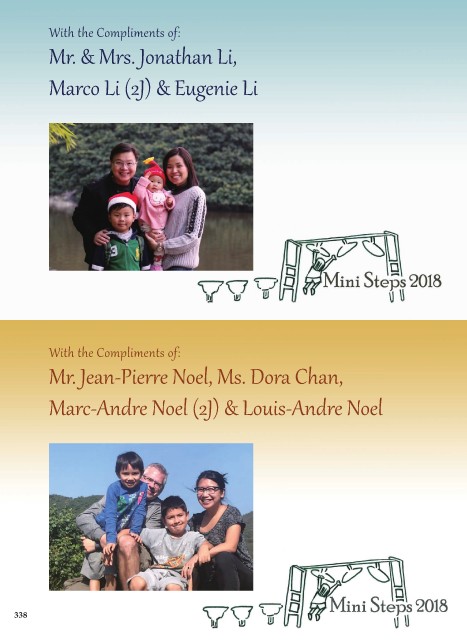 With the Compliments of: Mr. & Mrs. Jonathan Li, Marco Li (2J) & Eugenie Li With the Compliments of: Mr. Jean-Pierre Noel, Ms. Dora Chan, Marc-Andre Noel (2J) & Louis-Andre Noel 338