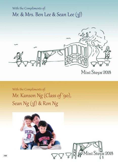 With the Compliments of: Mr. & Mrs. Ben Lee & Sean Lee (3J) With the Compliments of: Mr. Kanson Ng (Class of '90), Sean Ng (3J) & Ron Ng 348