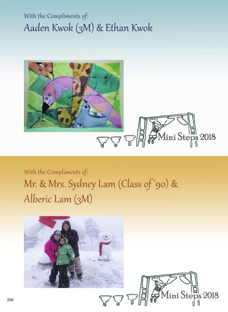With the Compliments of: Aaden Kwok (3M) & Ethan Kwok With the Compliments of: Mr. & Mrs. Sydney Lam (Class of '90) & Alberic Lam (3M) 350