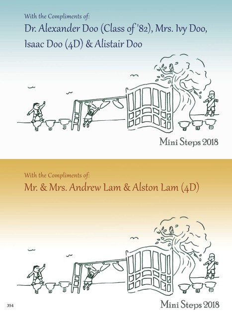 With the Compliments of: Dr. Alexander Doo (Class of '82), Mrs. Ivy Doo, Isaac Doo (4D) & Alistair Doo With the Compliments of: Mr. & Mrs. Andrew Lam & Alston Lam (4D) 354