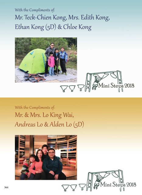 With the Compliments of: Mr. Teck-Chien Kong, Mrs. Edith Kong, Ethan Kong (5D) & Chloe Kong With the Compliments of: Mr. & Mrs. Lo King Wai, Andreas Lo & Alden Lo (5D) 364