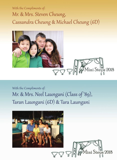 With the Compliments of: Mr. & Mrs. Steven Cheung, Cassandra Cheung & Michael Cheung (6D) With the Compliments of: Mr. & Mrs. Neel Laungani (Class of '89), Taran Laungani (6D) & Tara Laungani