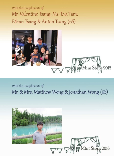 With the Compliments of: Mr. Valentine Tsang, Ms. Eva Tam, Ethan Tsang & Anton Tsang (6S) With the Compliments of: Mr. & Mrs. Matthew Wong & Jonathan Wong (6S)