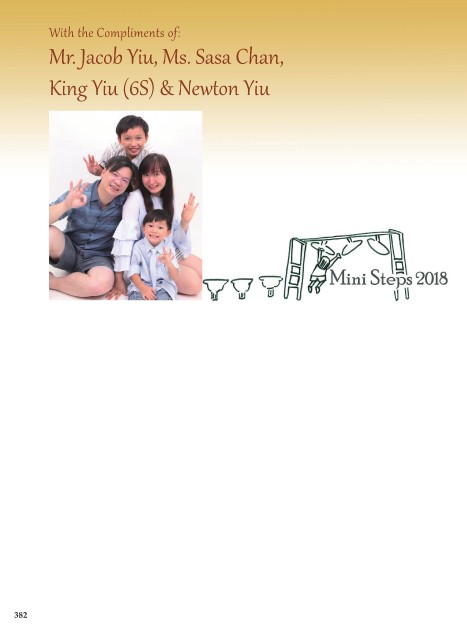 With the Compliments of: Mr. Jacob Yiu, Ms. Sasa Chan, King Yiu (6S) & Newton Yiu 382
