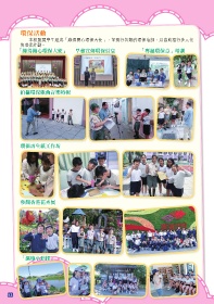 環保活動 本校甄選學生組成「綠得開心環保大使」,並進行各類的環保培訓,以協助推行多元化 的環保計劃。 「綠得開心環保大使」 早會宣傳環保信息 「專題環保章」培訓 拍攝環保歌曲音樂特輯 環保再生紙工作坊 參觀香港花卉展 「濕地小偵探」 53