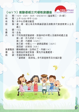 對 象 :婆、媳、祖父母及有興趣認識及推動多代家庭教育人士及