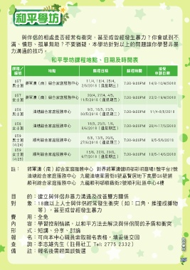 058 油塘綜合家庭服務中心 9/5, 16/5, 23/5, 7:30-9:00PM 11/4-8/5/2018