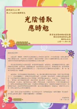 生,以及具資訊科技素養和創意的自主學習者。同學們務必奮勉向上、自強不息。「學海無涯勤是