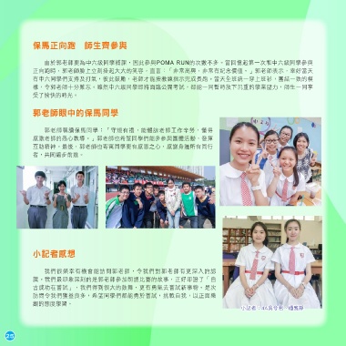 感激老師的悉心教導。」郭老師也希望同學們能多參與團體活動,發揮