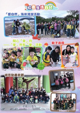 校 園 生 活 日 誌 「愛自然」海岸清潔活動 寒冷的天氣擋不住環保大使的熱情, 大家都積極參與海岸清潔活動 同學們都戴上手套,親力親為地為環保盡上一分力。 開心「果」月 —「果」然有「營」活動 親子廚房 合力製作美味的小食。 與媽媽一起享用 西瓜好甜啊!媽媽, 水果代零食,食得多滋味。 感謝您為我準備。 美味的cup cake! 彼思動畫參觀 同學們非常認真聽薛老師講解 參觀前來一張大合照!!! 15 毛毛很高喔!!