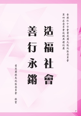 第四屆委員會就職典禮誌慶 香港紅十字會耆英團九龍地區委員會 善行永鏘 造福社會 耆英團港島地區委員會 敬賀 21