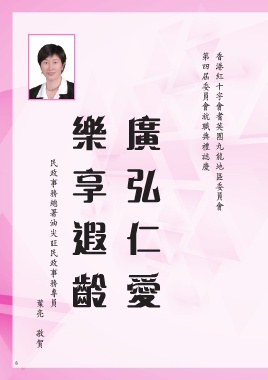 第四屆委員會就職典禮誌慶 香港紅十字會耆英團九龍地區委員會 樂享遐齡 廣弘仁愛 民政事務總署油尖旺民政事務專員 葉亮 敬賀 8