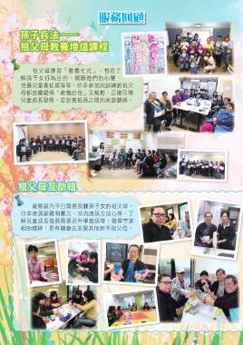 服務回顧 孫子兵法— 祖父母教養增值課程 ख़˨͎ኪ୦ቮɖόdܼ̍ə ༆ɿɾБމͦٙeහᛓ˼ࡁٙːᑊe ቮՅഁபชഃഃdεਞ̋ҁᇖٙख़˨ ͎ேІᙂᜊቮ̈ЍɦჀᕦd͍ᆽˏኬ Յഁϓڗ೯࢝dԨҷഛख़ʘගٙࢬᗫڷf 祖父母互助組 ኑၳਜʫ̻˚ცࠅᚥɿɾٙख़˨͎d ʱԮಫဲᗭձᏀɢeʹݴಫ˙جːeə ༆Յഁϓڗ೯࢝ცࠅʿʺኪ༟ৃഃd೯౨ςૐ пၚग़dһϞዚึ̘˕౪Չ˼อ˓ख़˨͎f 3