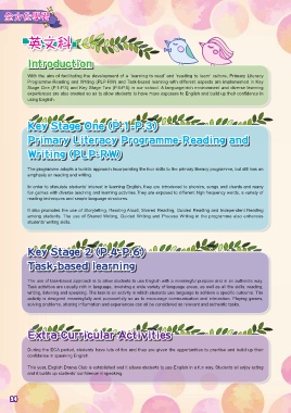 Stage One (P.1-P.3) and Key Stage Two (P.4-P.6) in our school. A language-rich environment and diverse learning