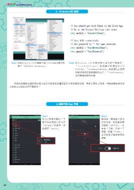 Step1. 利用Arduino IDE打開剛下載了Blynk函式庫中的 Step2. 於Arduino IDE中修改例子當中的下例部份: