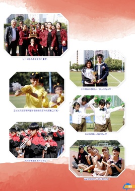 紅社同學為本年度的大贏家。 李美寶同學獲得女子個人全場冠軍。 黃社社長程智健同學帶領啦啦隊落力為運動員打氣。 各社在服飾方面花盡心思。 步操管樂團表演非常用心。 高副校長與女子校友隊合照。 89