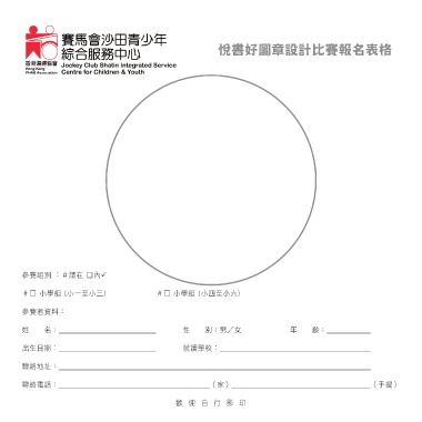 悅書好圖章設計比賽報名表格 參賽組別 :#請在 □內 #□ 小學組 (小一至小三) #□ 小學組 (小四至小六) 參賽者資料: 姓 名: 性 別:男/女 年 齡: 出生日期: 就讀學校: 聯絡地址: 聯絡電話: (家) (手提) 歡 迎 自 行 影 印