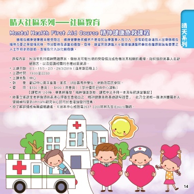 【課程共12小時,學員將獲發「精神健康急救」課程中文手冊一本及每節課堂筆記】