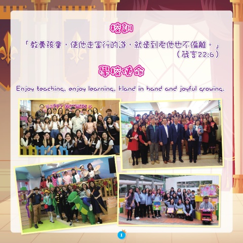 校訓 校訓 「教養孩童,使他走當行的道,就是到老他也不偏離。」 (箴言22:6) 學校使命 學校使命 Enjoy teaching, enjoy learning, Hand in hand and joyful growing. 1