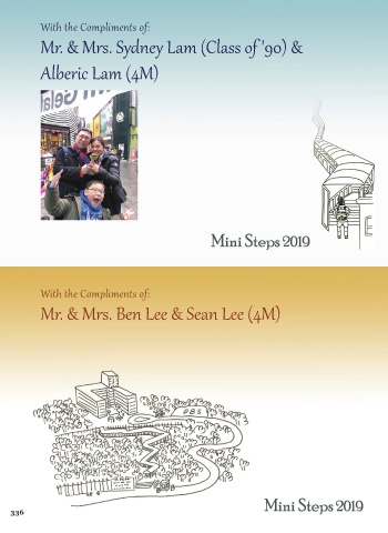 With the Compliments of: Mr. & Mrs. Sydney Lam (Class of '90) & Alberic Lam (4M) With the Compliments of: Mr. & Mrs. Ben Lee & Sean Lee (4M) 336