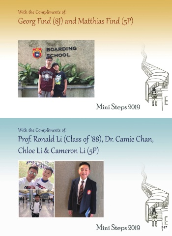 With the Compliments of: Georg Find (8J) and Matthias Find (5P) With the Compliments of: Prof. Ronald Li (Class of '88), Dr. Camie Chan, Chloe Li & Cameron Li (5P) 347