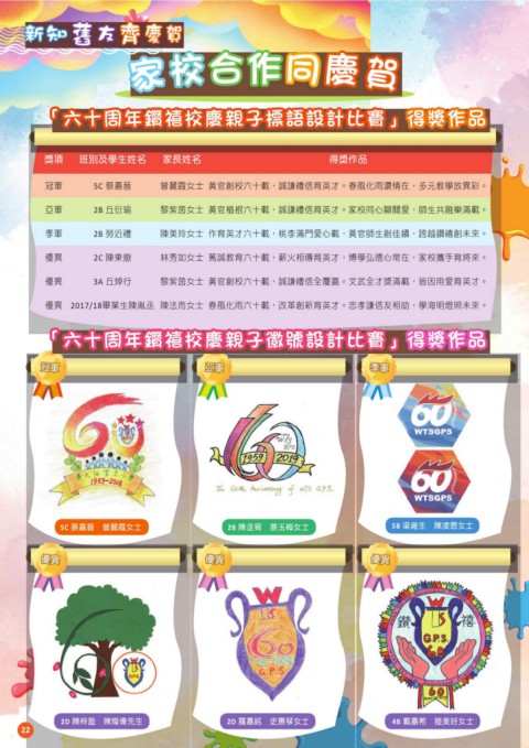 「六十周年鑽禧校慶親子標語設計比賽」得獎作品
