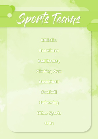 Sports Teams Athletics Badminton Ball Hockey Climbing Gym Basketball Football Swimming Other Sports ECAs