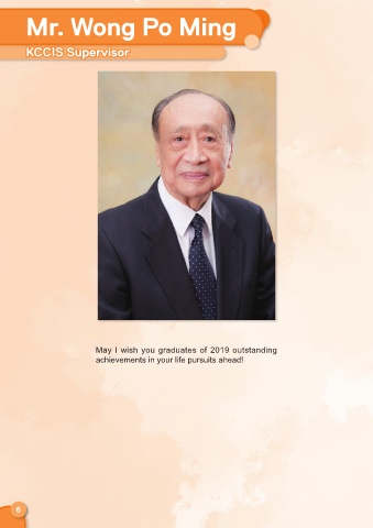 Mr. Wong Po Ming KCCIS Supervisor May I wish you graduates of 2019 outstanding achievements in your life pursuits ahead! 6