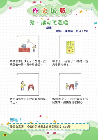 作 文 比 賽 愛,讓家更溫暖 季軍 姓名:許洛翡 班別:2A ٙ͛˚ҞՑəl݊dҢ ί̔ɪdҢᄳədज़ ซ䋠ਂɓੵ͛˚̔ഗf આ͛˚Ҟᆀl ҢҪவੵ͛˚̔׳ίࣲٙ ΫԸədҢҪவੵ̔ ɿɪf ഗfᙂܘකːl 評語: يჀːจዢdڦЫ֛ٙึชաՑЫ࿁μٙฌl 018