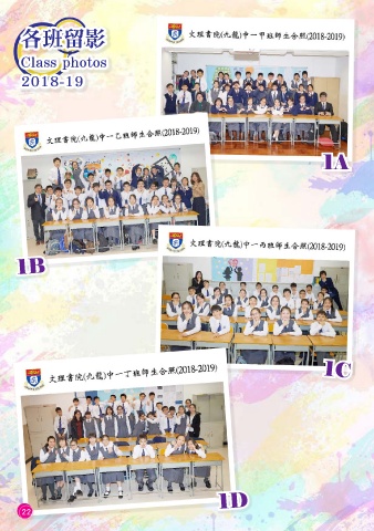 各班留影 Class photos 2018-19 1A 1B 1C 1D 22
