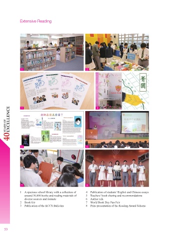 1 A spacious school library with a collection of 4 Publication of students’ English and Chinese essays