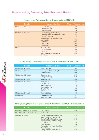 Students Attaining Outstanding Public Examination Results YEARS OF EXCELLENCE 40 57
