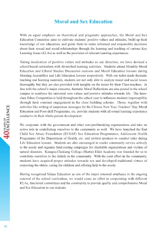 KLAs, functional committees and the community to provide quality and comprehensive Moral