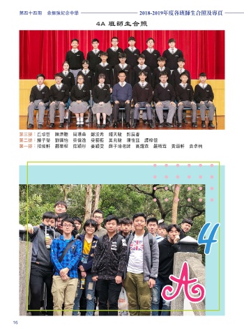 第四十四期 余振強紀念中學 2018-2019ϋܓफࢪ͛Υʿਖ਼ࠫ 4A 班師生合照 第三排:˳ࡪ ᑋ մዽ⮹ ቍऔҎ ᒤ˂ᒺ ు࢝ြ 第二排:ᙘɿᆦ ᄎԽ ᇹਃඅ ᖵᔝ Ίᒺ ڲҒ ᗈ 第一排:םڲ ᆀ নҕ ۴ත ᑡɿຄϼࢪ ৷ᘴಌ ᘌ䇐ᎌ ර ՙ 4 A 16
