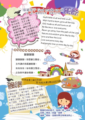 聽聽聽聽 聽聽聽聽 ! 我要聽主聲音 ; 主所講的我最喜歡聽。 來來來來 ! 都來聽主聲音 ; 主耶穌所講都要聽。 聖靈所結的果子,就是仁愛、喜樂、和平、 忍耐、恩慈、良善、信實、 溫柔、節制。這樣的事沒有律法禁止。 2