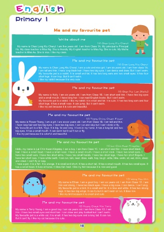 My name is Kelly. I am six years old. I am from Class 1B. I am short and thin. I have two big eyes