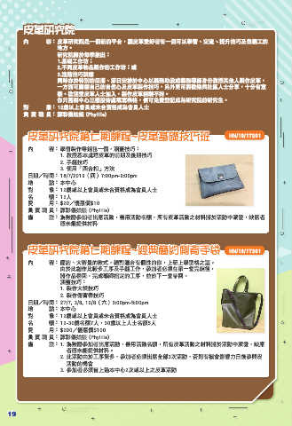 內 容 : 皮革研究院是一個新的平台,讓皮革愛好者有一個可以學習、交流、提升技巧及做義工的
