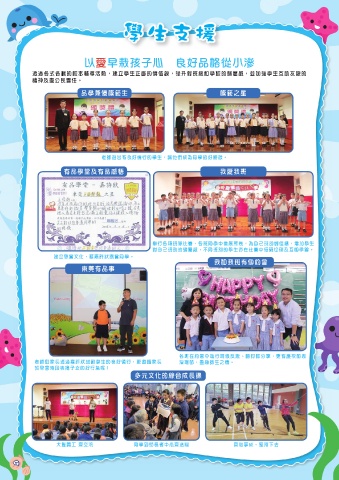 透過各式各樣的校本輔導活動,建立學生正面的價值觀,提升對班級和學校的歸屬感,並加 以愛早栽孩子心 良好品格從小滲