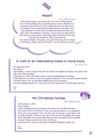 years. Now I am studying in Primary 4. I go to school by Light Transit