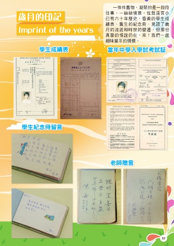 ɓᔚيdኑၳٙ݊ɓݬݬ 歲月的印記 ֻԫdɓകകઋจfР༸֜ʃ ʊϞʬɤϋዝ̦dරٙኪ͛ϓ ᐶڌeᔚ͛ٙߏׂ̅dԈᗇə๋ Imprint of the years ˜ٙݴձࣛ˰ٙᜊቋdШԟ΅ ॆᅚٙઋሒʥίfԸlҢࡁɓৎ բϋٙઋᕿf 學生成績表 當年中學入學試考試証 學生紀念冊留言 老師贈言 37
